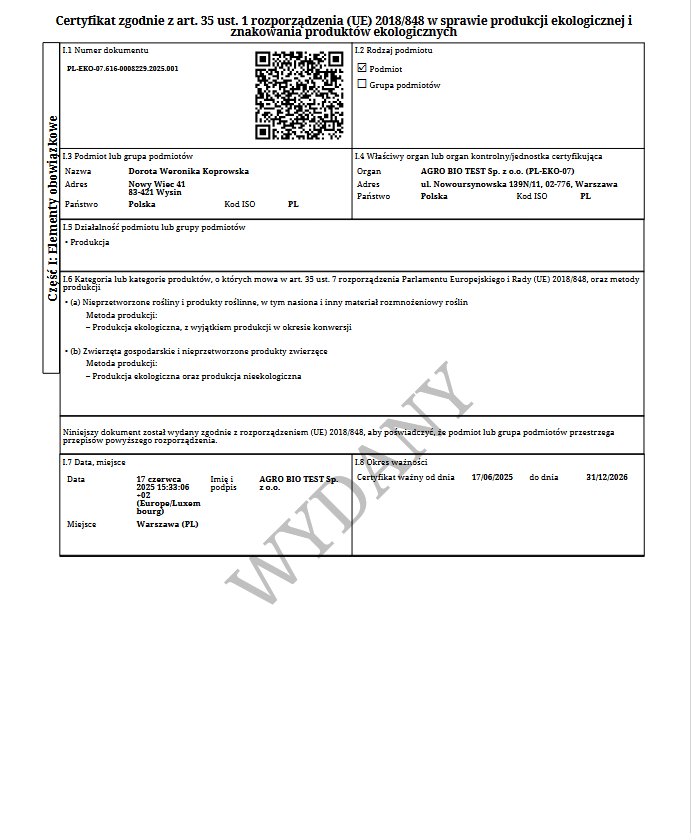 Zobacz nasz certyfikat ekologiczny i dowiedz się, co naprawdę oznacza ekologiczne rolnictwo: